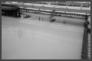 運転時と池が空になって中が見える写真が交互にうつります ![]() 最初沈殿池 |