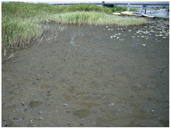 江戸川放水路東西線鉄橋上流の干潟。