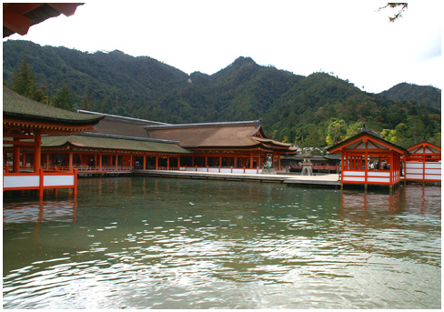 | 1,はじめに 宮島には満潮に近い頃になるように潮位を調べて到着した。瀬戸内海の潮位差は大きく、満潮の方が写真写りがいい。 厳島神社は海の上に社殿を建てるという想いが今に伝わる遺産となっている。しかしその自然条件を考えると厳しいものがある。最近の台風で2度も大破するなど、維持修復に多額の費用を必要とする施設が、長い歴史の中でよく保存されてきたものである。 2,神社の設計 厳島神社は宮島の北の小さな湾内にあり、三方からの波は来ない。しかし北西方向は開いていて、北西風により2kmの距離で成長した波がまともにくる。干満のこともある。瀬戸内海は干満の差が大きく、大潮時に4m程度もある。秋の大潮満潮時、時として回廊まで上がってきて拝観中止になることがある。