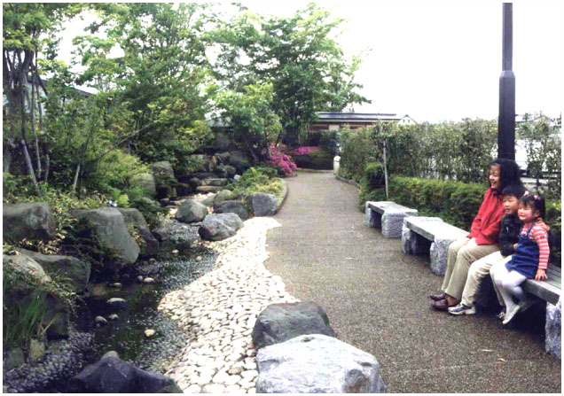 この近くで雨水幹線排水路を流れる水を一日千トン、ポンプで汲み上げ、微生物、ろ過処理をして2本のせせらぎに流しています