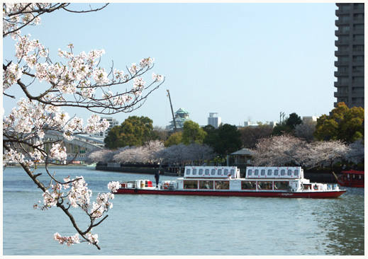 アクアライナーという遊覧瀬がここOAP港、天満橋、淀屋橋、大阪城公園をまわっています。一周40分、1時間間隔で運転