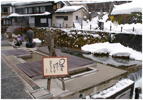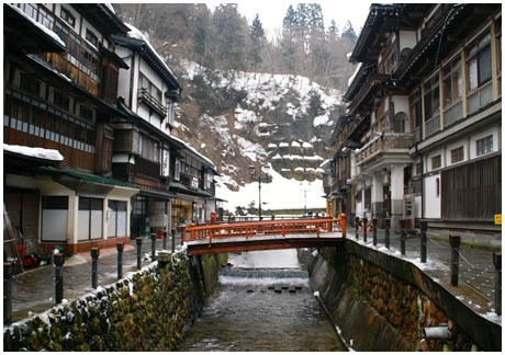 川の両側にびっしりと大正から昭和初期の懐かしい11の温泉宿が並んでいます。道は狭く自動車は入れません。温泉としては約260年もの歴史があります。1913年の洪水で壊滅しその後再建