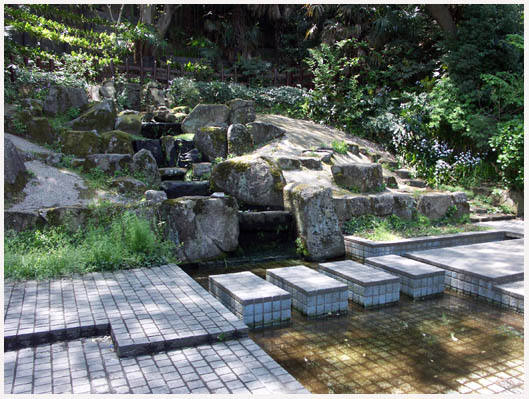 水路脇の斜面が公園になって石組みや植栽が行われていました。