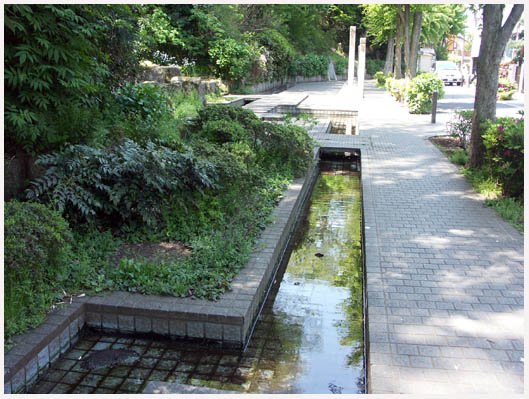 旧河川敷の水路に、地下鉄の湧水を流しているせせらぎ。市営地下鉄三ッ沢上町と三ッ沢下町の間にあります。もう少し水量が多いといいのですが