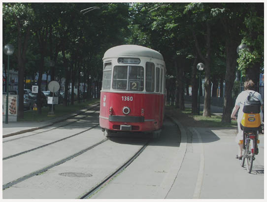 リングを回る環状市電は1番が内回り(時計回り)、2番が外回り。2という数字が見えます。市電の軌道敷きの中にマンホールがありました。どっちが先にあって位置調整はどうしたのか興味のあるところ。