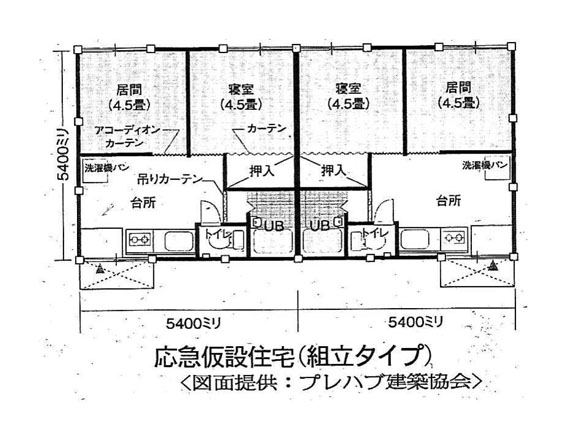 当面3家族で住めるかの問題があります。洗面、トイレ、洗濯機、流し台付き食堂と仮設住宅よりは広めですが、我慢する必要があります。