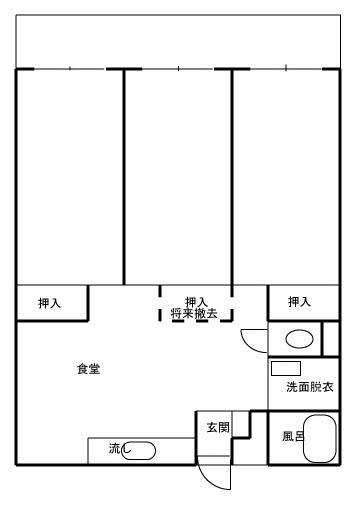 1世帯の生活となった時、真ん中の押入を撤去すると住みやすくなるでしょう。