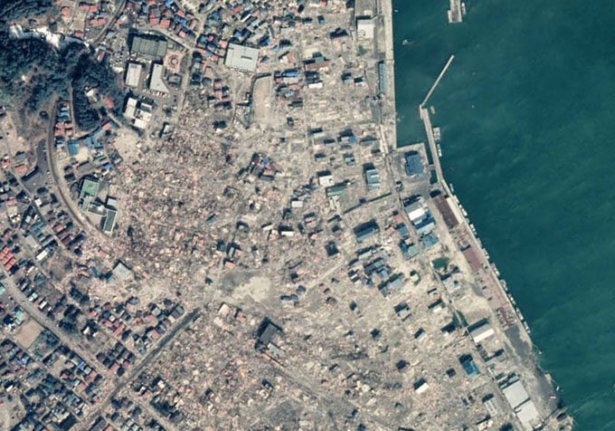 標高10m以下のところが被災したが、躯体はけっこう残っていることが分かる。港の工場や倉庫のような建物、陸中山田駅前のびはんストアなど。